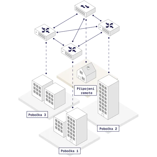 Vysokorychlostní datové okruhy na úrovni L2 a L3 vám umožní efektivní a bezpečné propojení poboček, datových center, cloudových služeb a dalších přípojných míst či systémů.